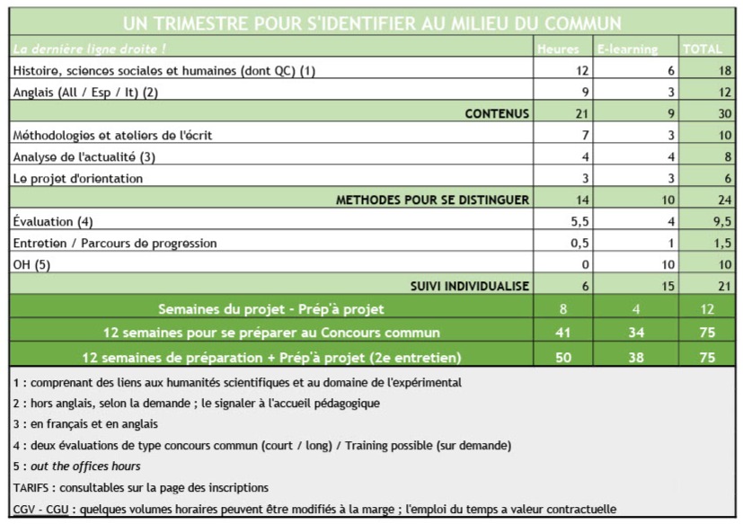Horaires des cours de préparation continue : à partir de 14h-14h30 le mercredi ou le samedi en fonction des formules