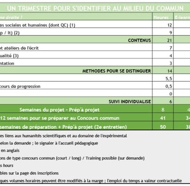 Le travail se fait en petit groupe, le plus souvent groupe - classe (sauf pour des options ou des langues vivantes) qui permet une progression collective, une bonne préparation s'appuyant sur des bases partagées, y compris d'ailleurs avec les préparations continues
