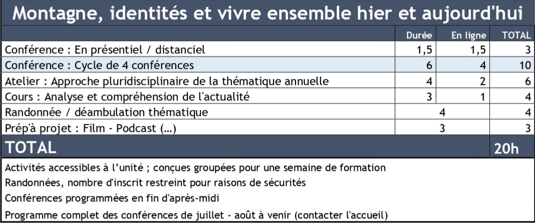 Après le cycle 2025 "Fronts et frontières de la montagne", la thématique 2026 se déroulera entre juillet et août en Savoie (en présentiel / en distanciel selon vos préférences).