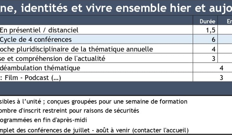 Cours, conférences et tables rondes : à l'unité ou en cycle, approfondir et réfléchir au travers du regard d'élus, de producteurs, d'acteurs associatifs engagés ou de chercheurs spécialistes par des échanges à la portée de tous et participatifs